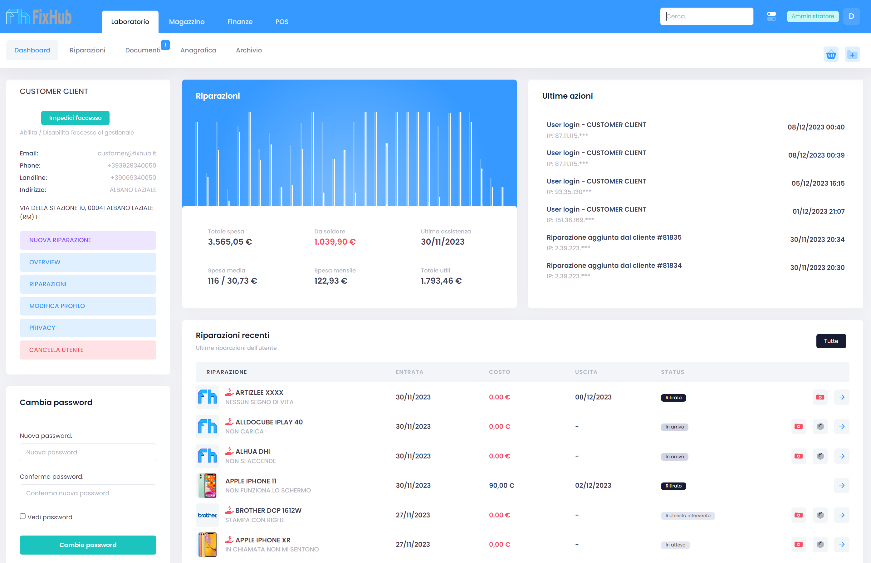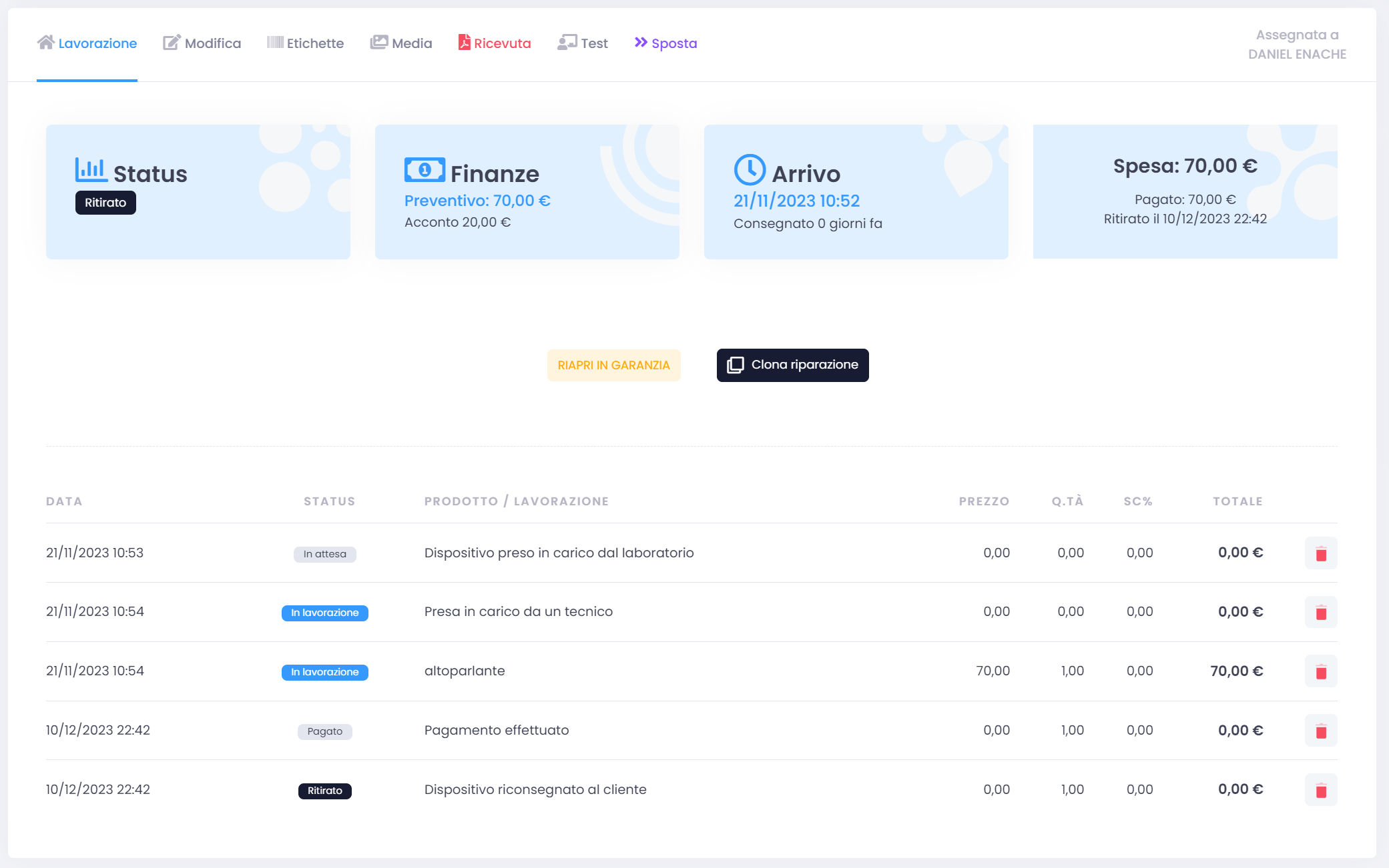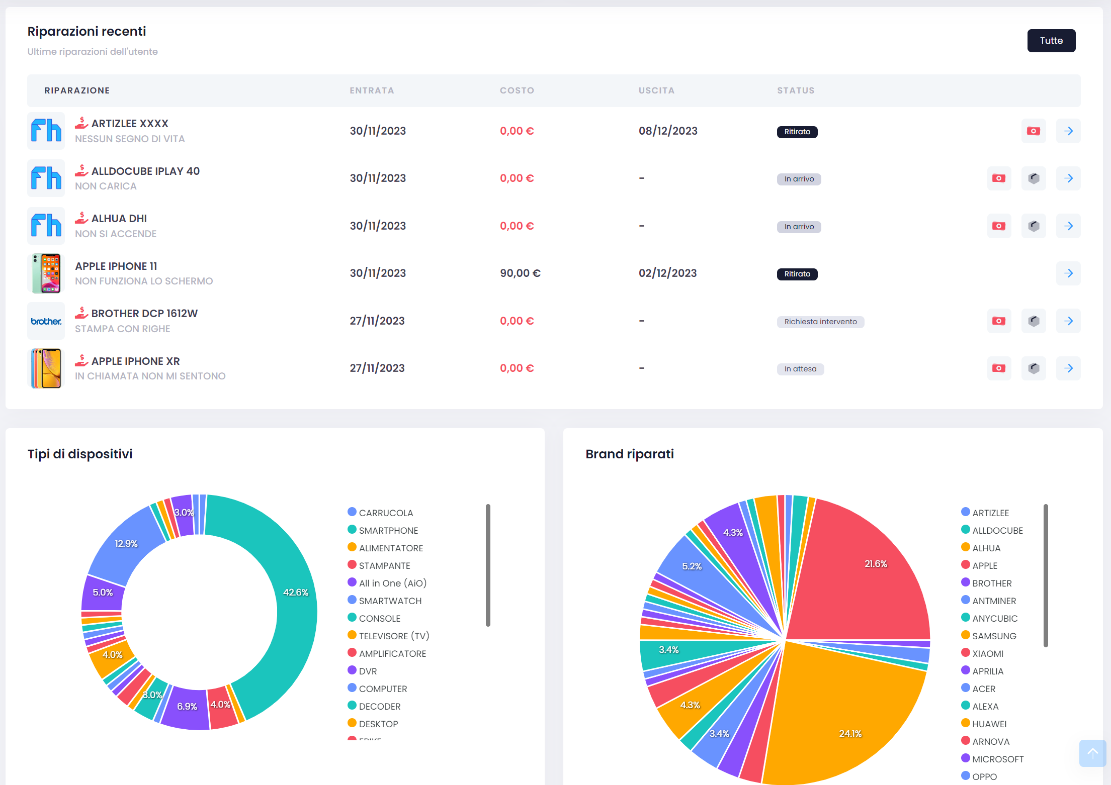 potrai seguire tutte le fasi di lavorazione dal tuo pannello di controllo e riavere tutta la documentazione da presentare al cliente finale appena ritorna il dispositivo