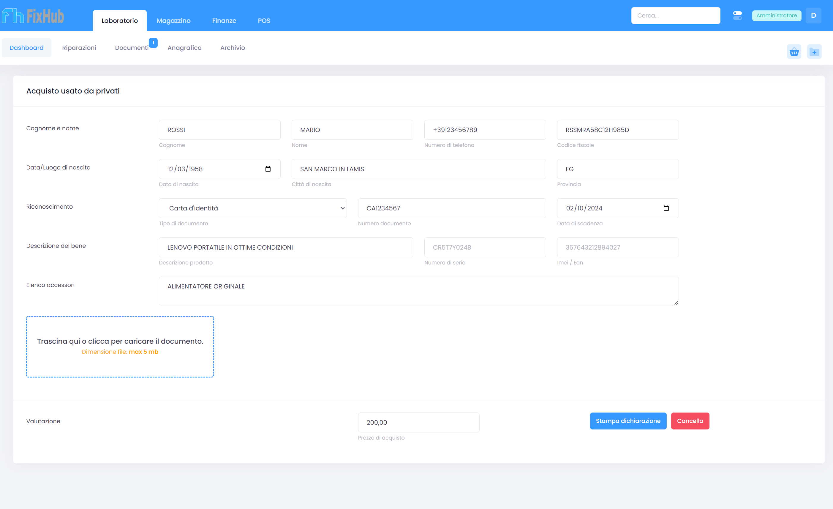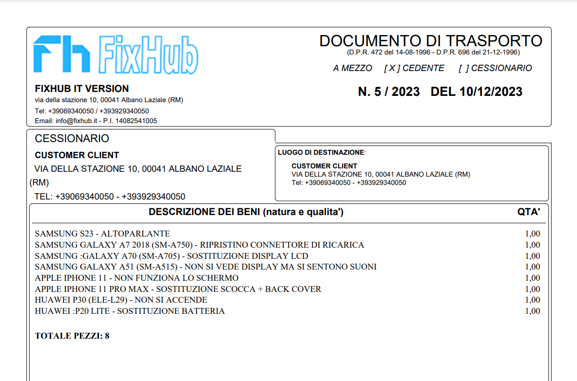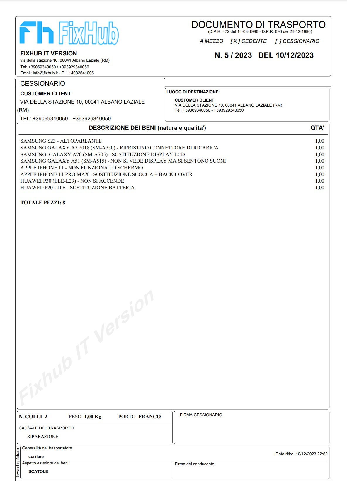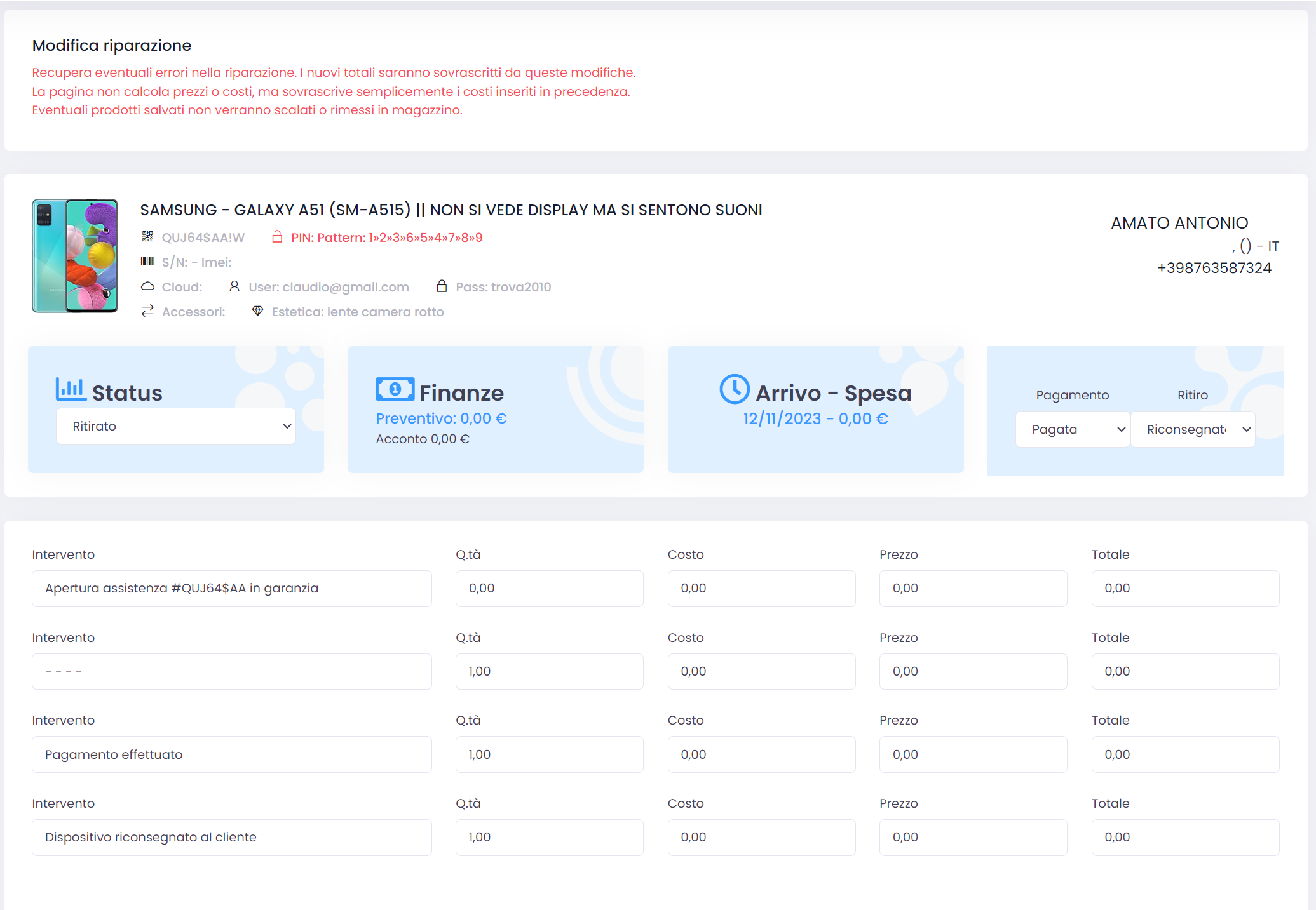 potrai seguire tutte le fasi di lavorazione dal tuo pannello di controllo e riavere tutta la documentazione da presentare al cliente finale appena ritorna il dispositivo