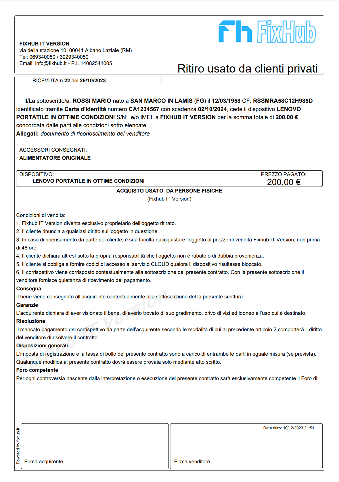 I tuoi rivenditori possono stampare ricevute con il proprio nome